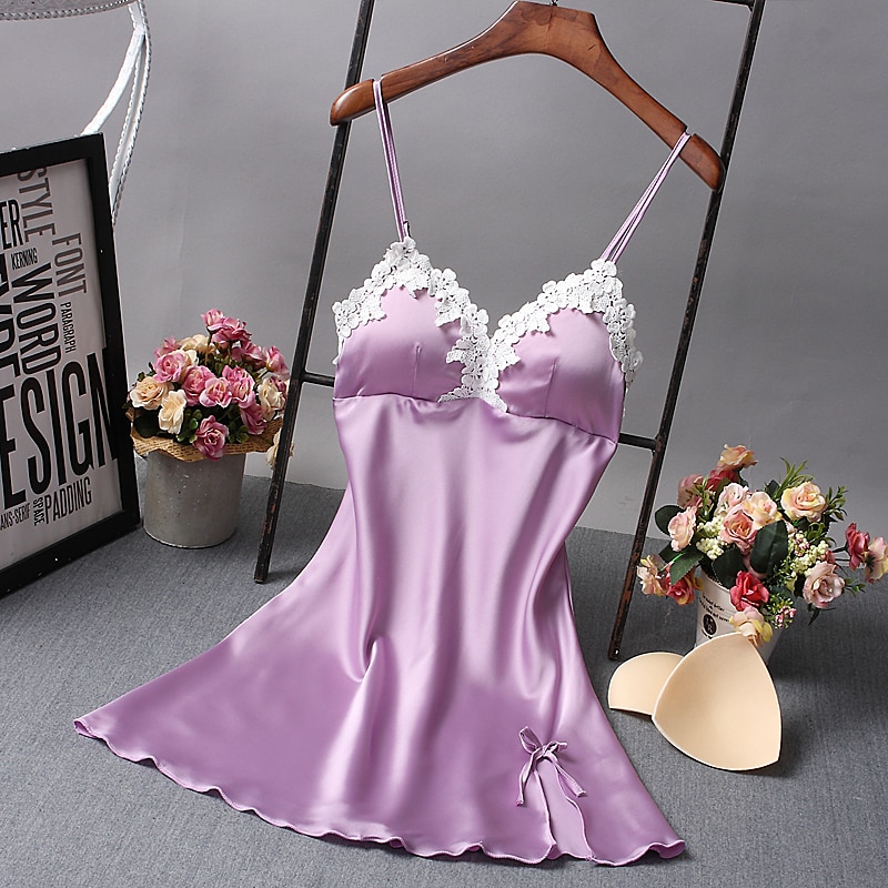 Sexy Silk Nightdress With Padded Bra